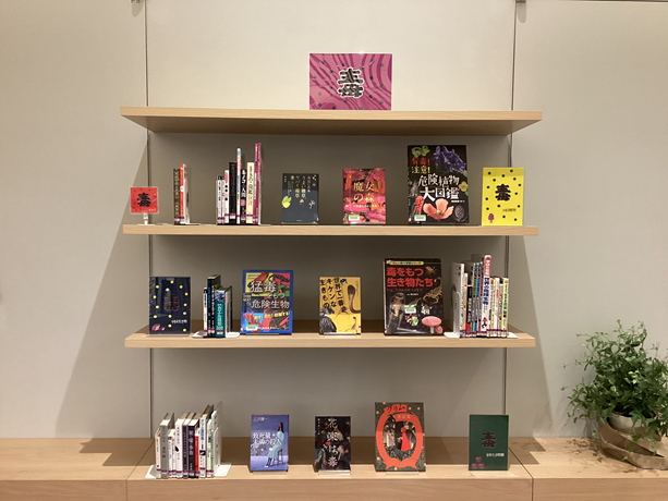 ここでは、「毒」に関する資料を「毒について」「毒のある植物」「毒のある生き物」「毒が出てくる物語」の4つに分けて展示しています。