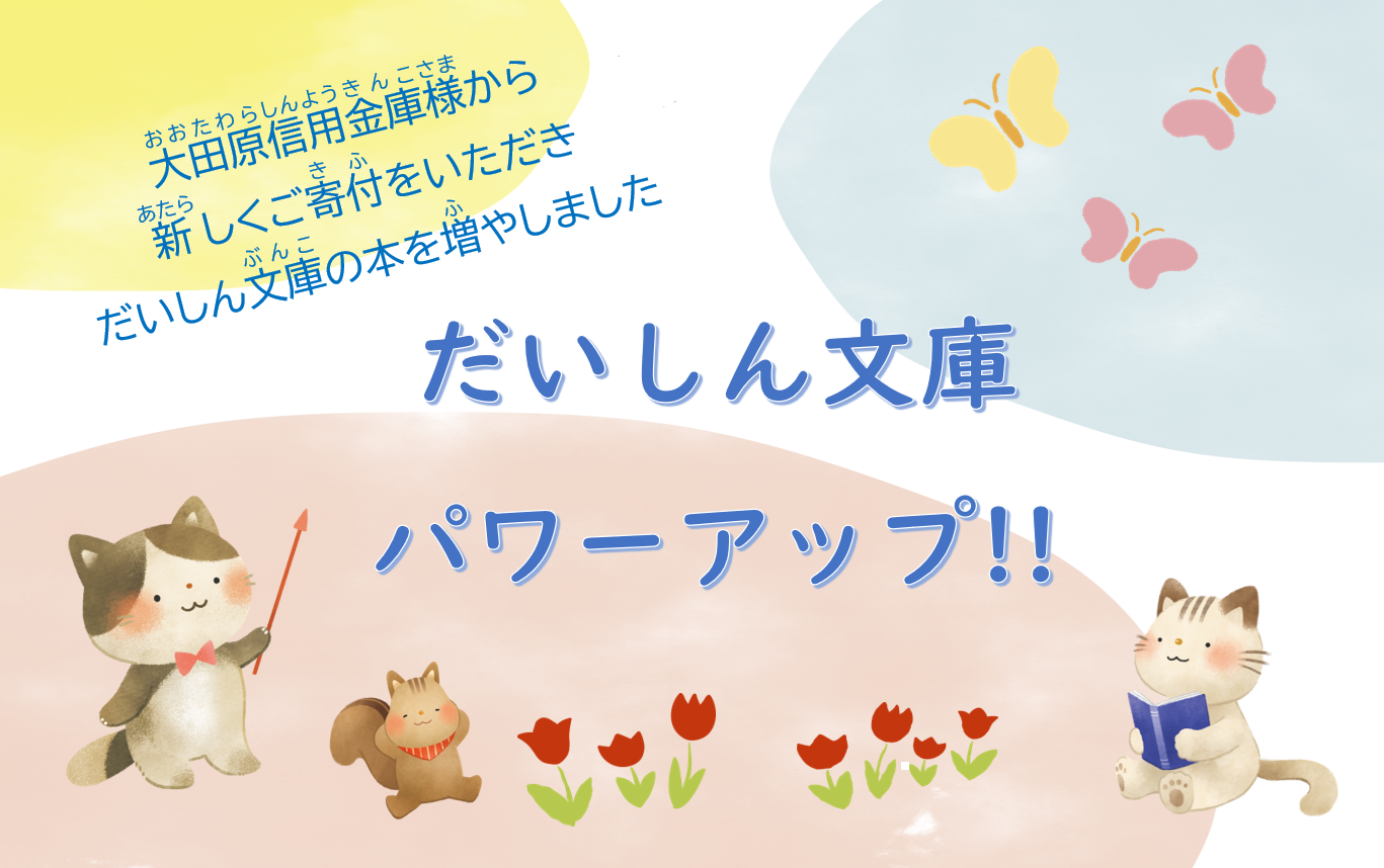 1階カフェの向かい「だいしん文庫パワーアップ!!」コーナーでお知らせしています。