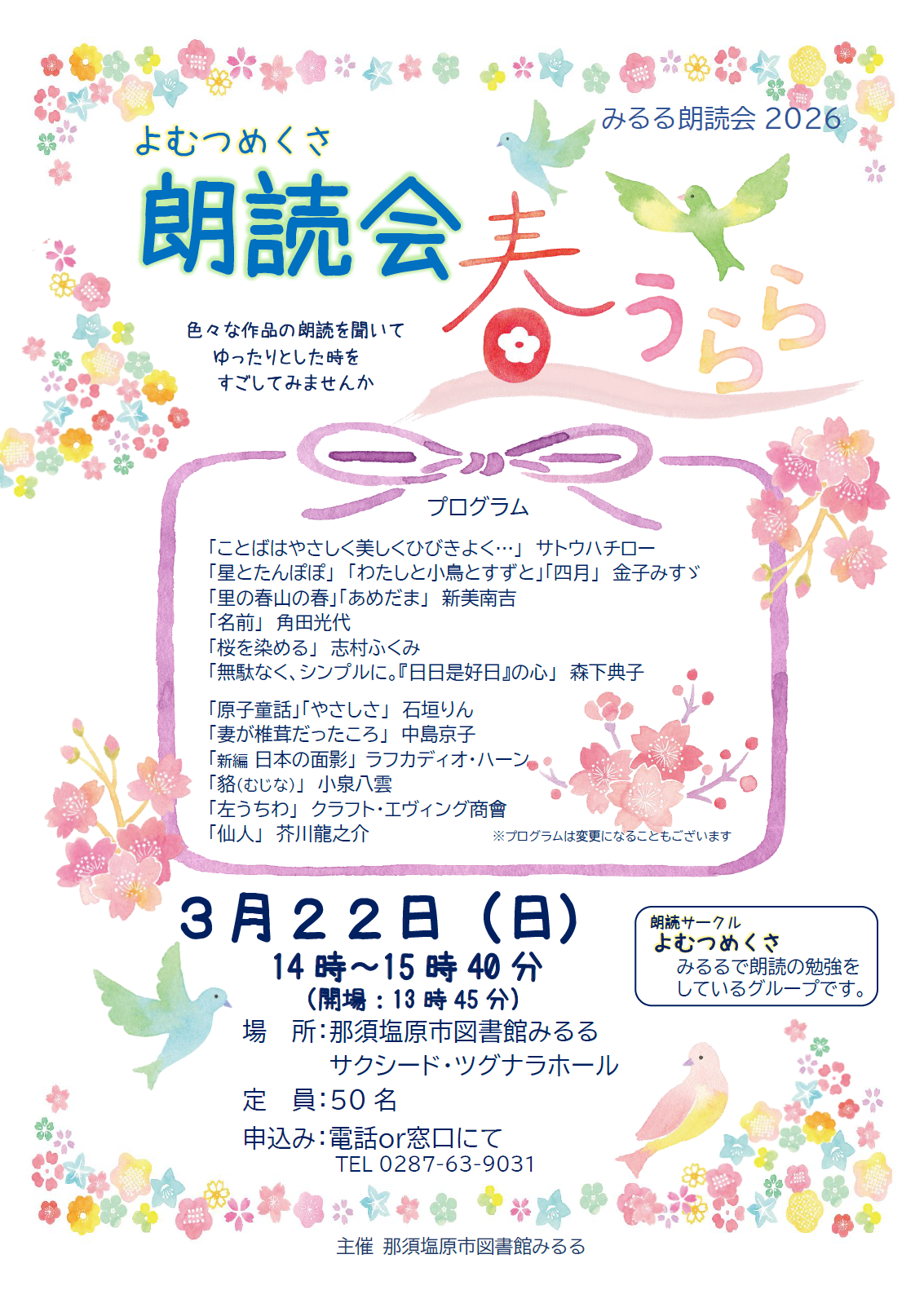 お問い合わせ:那須塩原市図書館みるる 0287-63-9031
